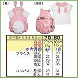【着ぐるみシリーズ】ウサギのブラウスとロンパースのスーツです。赤ちゃんのときだから着てほしい、かわいいお洋服です。赤ちゃんのかわいいスナップ写真をパチリ!とっても記念になります。お出かけ用、記念撮影用としてとっても人気がある商品です。 ウサギのかわいいブラウスとロンパースのセットです。 お出かけやパーティで注目を集めるベビー服として人気。 赤ちゃんの思い出の記念写真の衣装として人気です。 【素材】ロンパス/ブラウス 天竺 綿 100% 【洗濯】洗濯機でお洗濯できます。